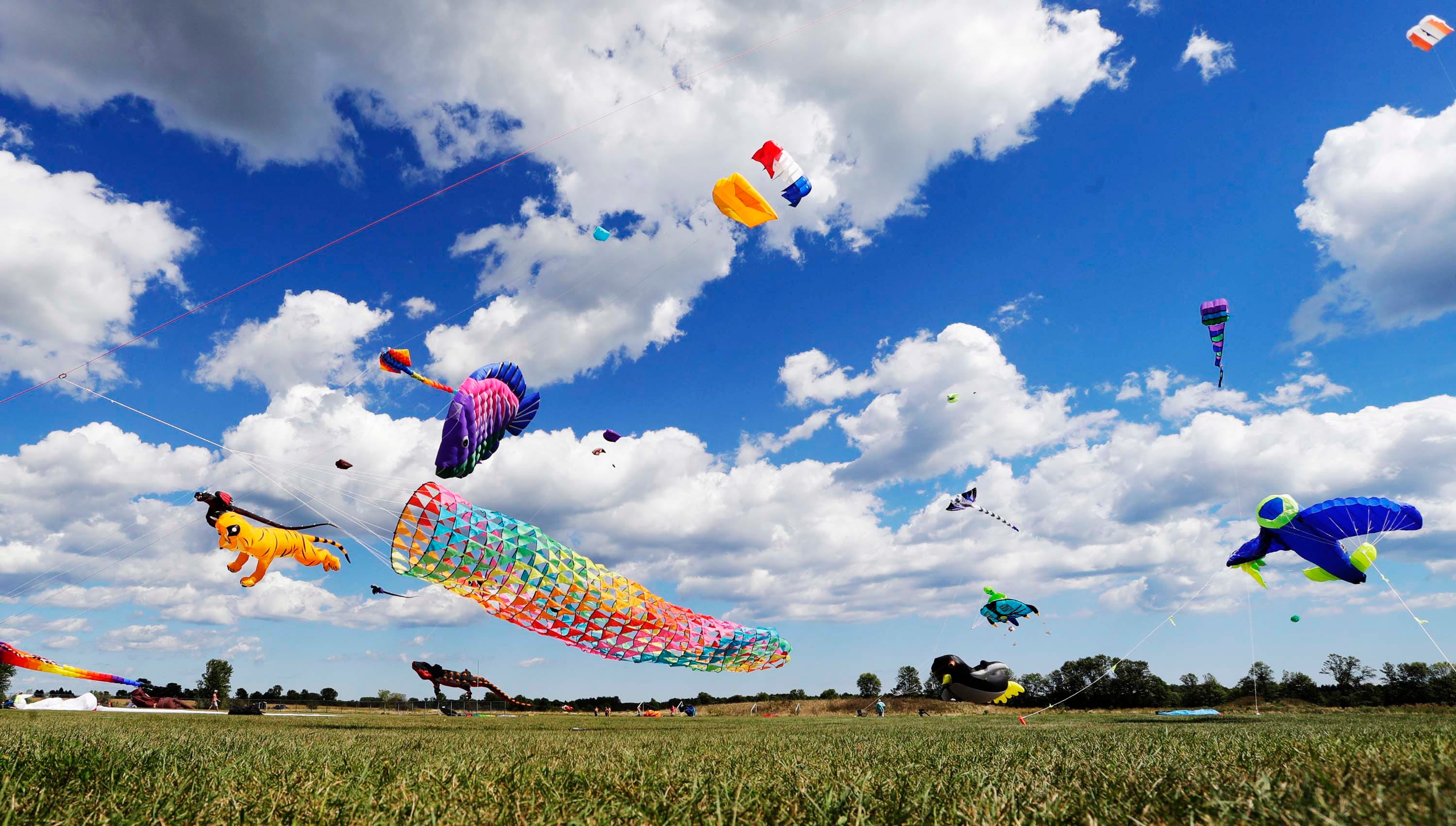The 15th annual Kites Over Lake Michigan is held this year at Two Rivers High School due to Lake Michigan water levels.