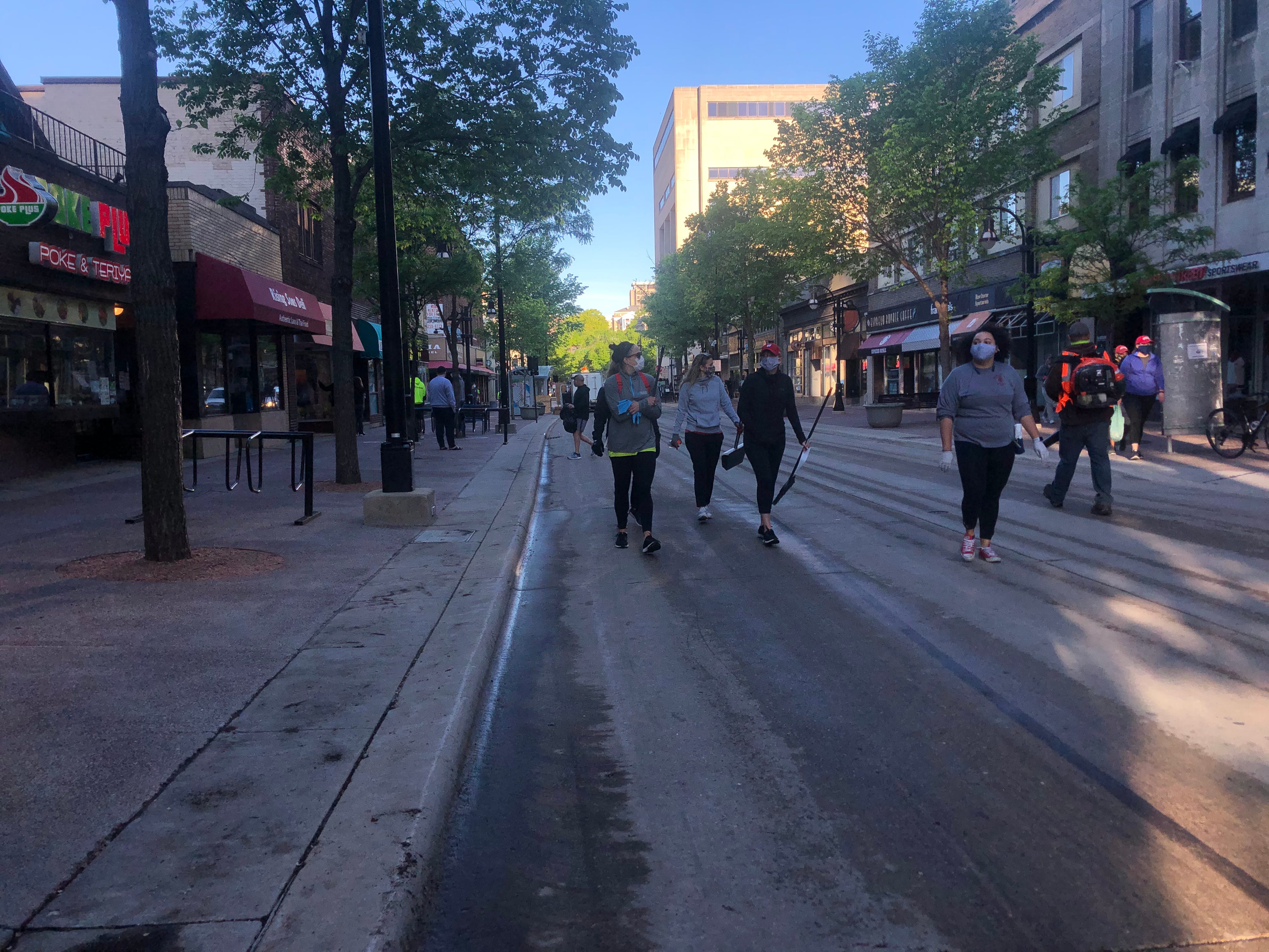 Volunteers started cleaning up in Madison Sunday morning along State Street.